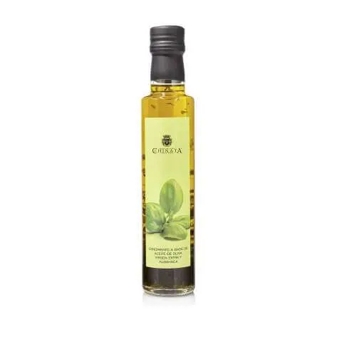 El condimento de Albahaca La Chinata es un producto gourmet de nuestra línea de condimentos con especias. En este caso, hemos macerado una selección de hojas frescas de albahaca con el mejor aceite de oliva virgen extra para conseguir obtener el frescor y el aroma propios de esta planta junto con el sabor del mejor AOVE de La Chinata. El resultado es un AOVE de gran calidad con el gusto a la albahaca ideal para realzar cualquier plato.