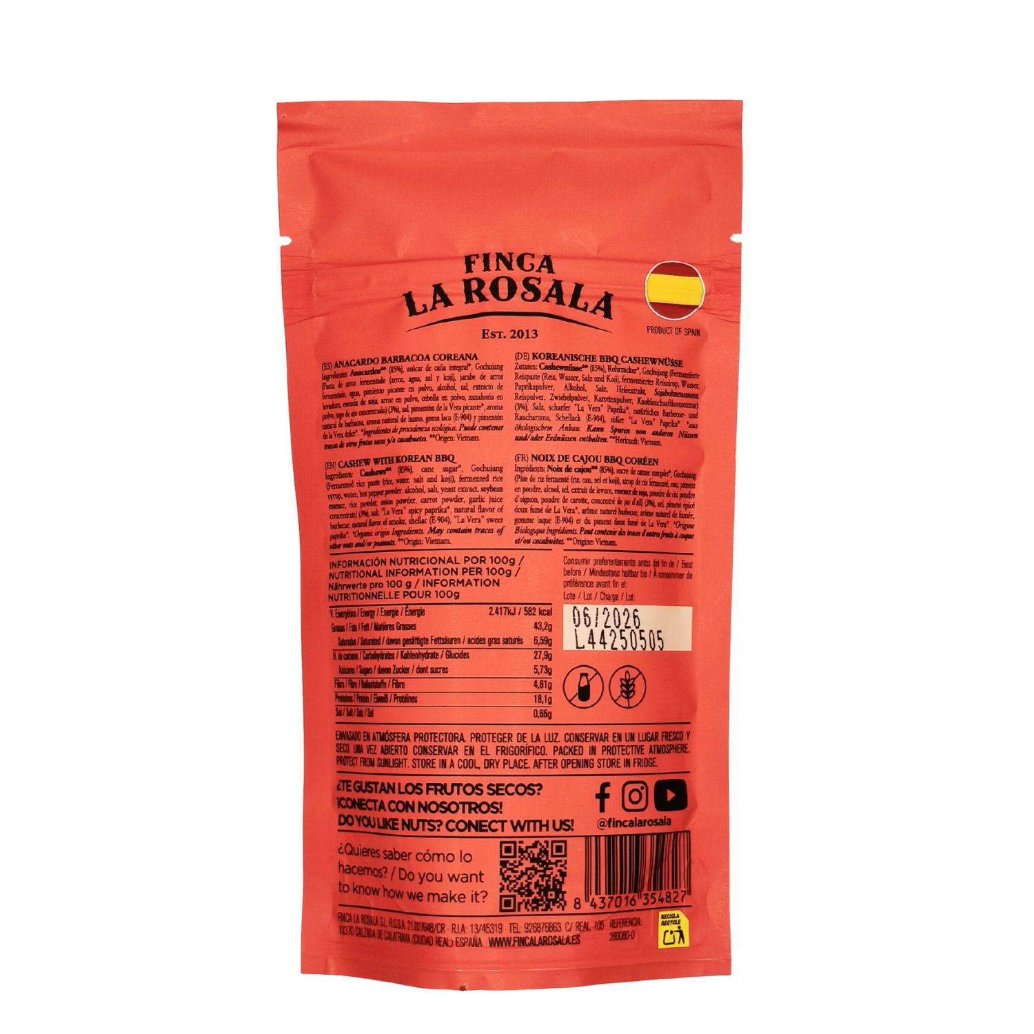 Crujientes, sabrosos y con ese toque ahumado y picante que engancha. Así son los Anacardos BBQ Coreana de Finca La Rosala. Están tostados al horno y cargados de Gochujang, la famosa pasta coreana que les da su sabor único.