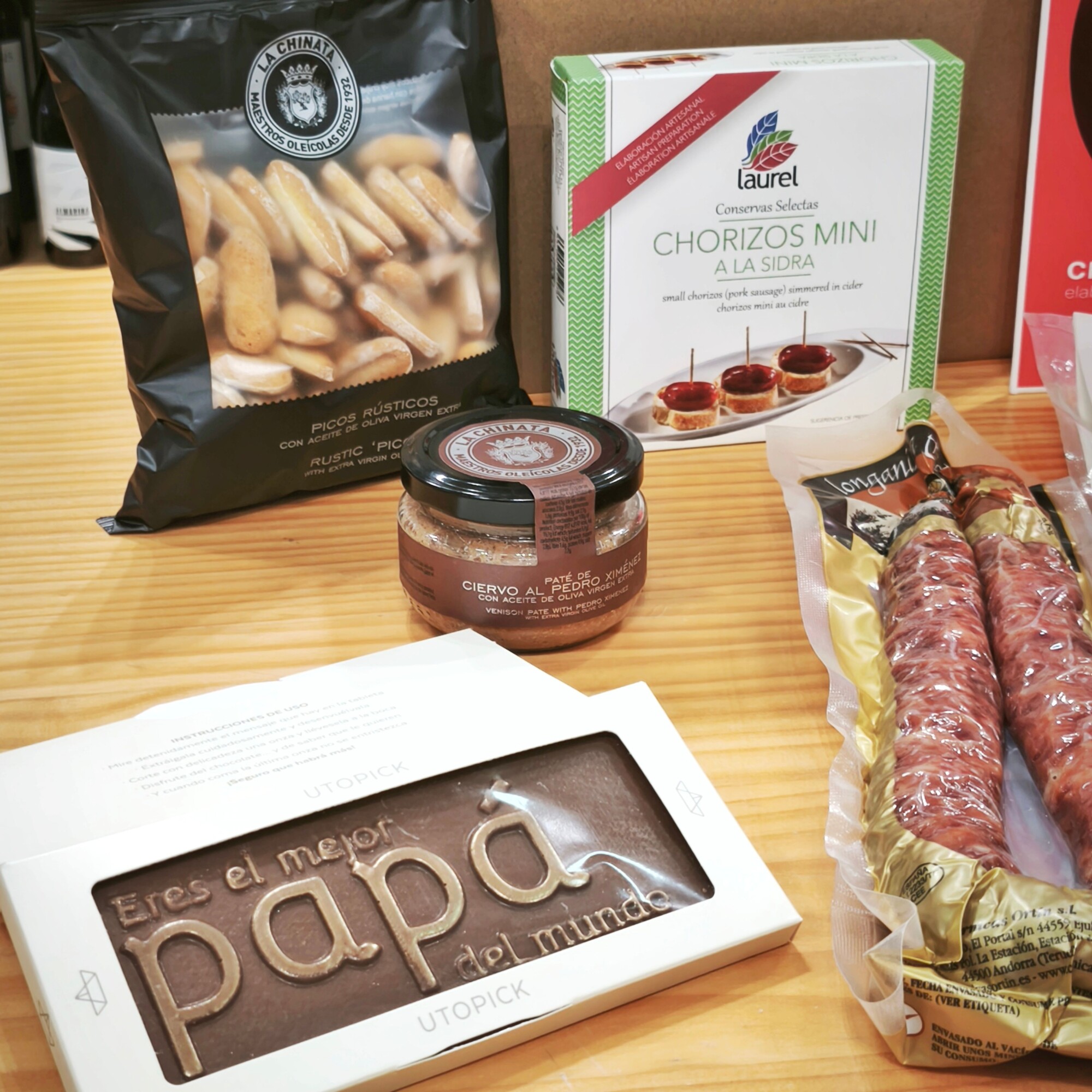 Sorprende a papá con una selección exclusiva de embutidos artesanos y delicias gourmet. Desde el prestigioso chorizo de Joselito hasta el exótico fuet de avestruz de Embuastur, esta caja está diseñada para ofrecer un festín de sabores auténticos.