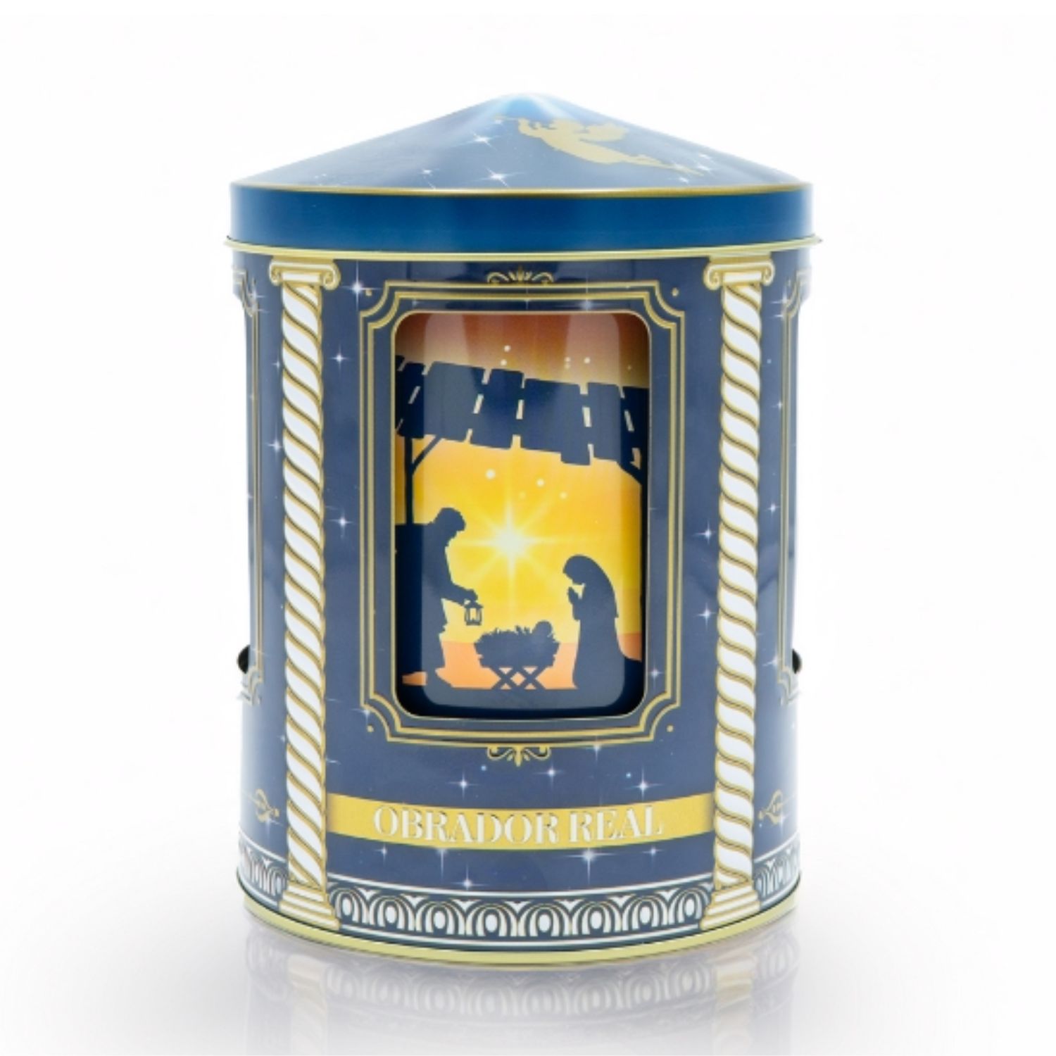 Una edición limitada que transforma el arte de regalar en una experiencia única. Esta lata musical con forma de carrusel está inspirada en el viaje y la adoración de los Reyes Magos, girando al ritmo de una melodía celestial que acompaña una escena ilustrada en movimiento. Sus detalles en oro y el cielo estrellado la convierten en una pieza de colección que une tradición, emoción y sabor.