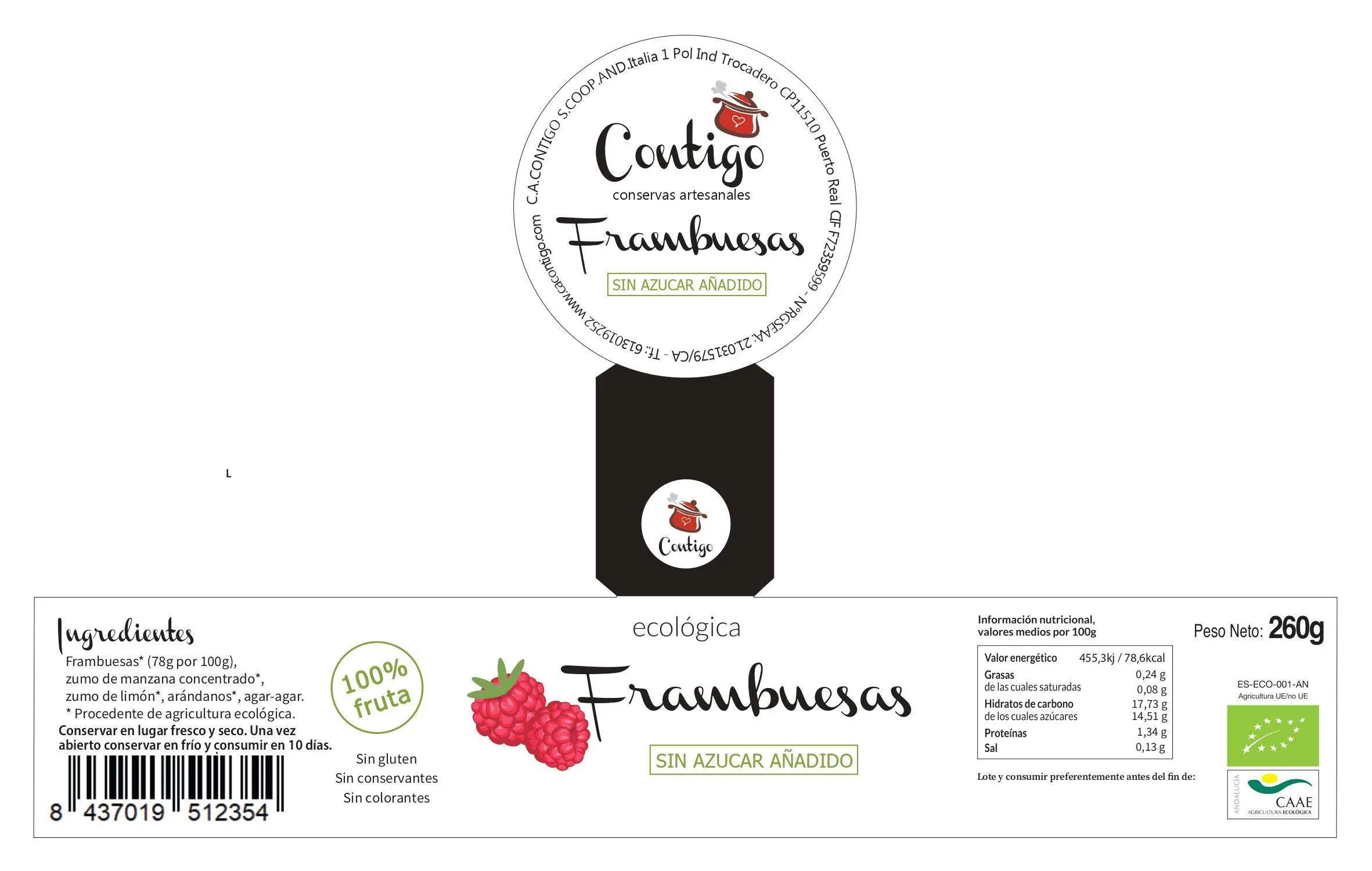 Ingredientes: Frambuesas ecológicas, zumo concentrado de manzana ecológica, zumo de limón, agar-agar.