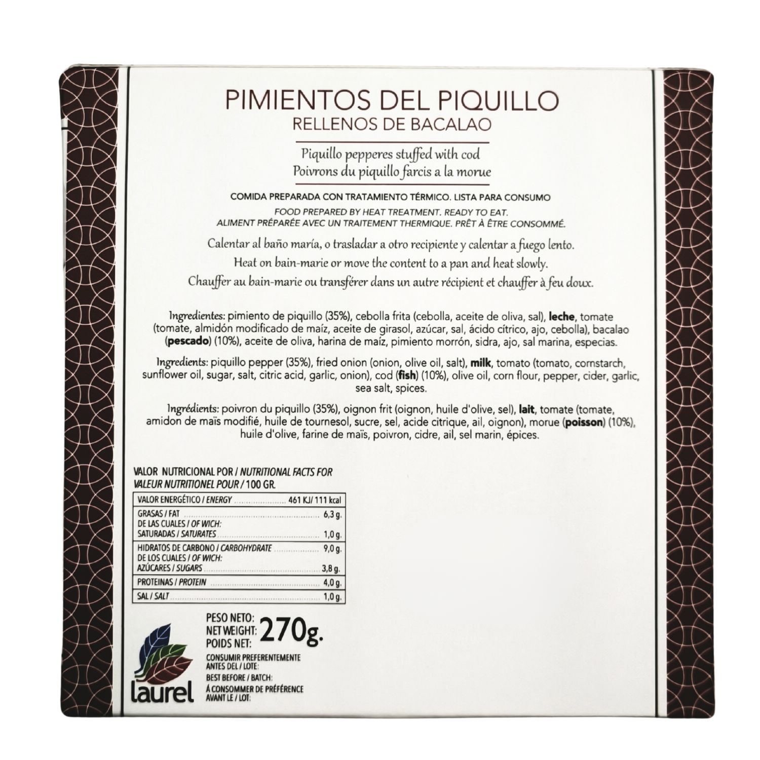 En Conservas Laurel tienen como lema no usar ningún tipo de aditivo o componente no natural en sus platos, como conservantes y colorantes, lo cual se convierte en su sello de calidad y garantía, así como su compromiso con una alimentación sana.