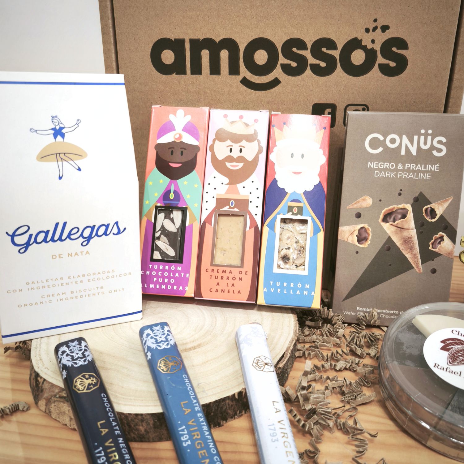 Sumérgete en la magia de la Navidad con nuestra caja llena de dulces tentaciones especialmente diseñada para los supergolosos y los más pequeños de la casa. ¡Melchor, Gaspar y Baltasar te esperan en forma de turrón!