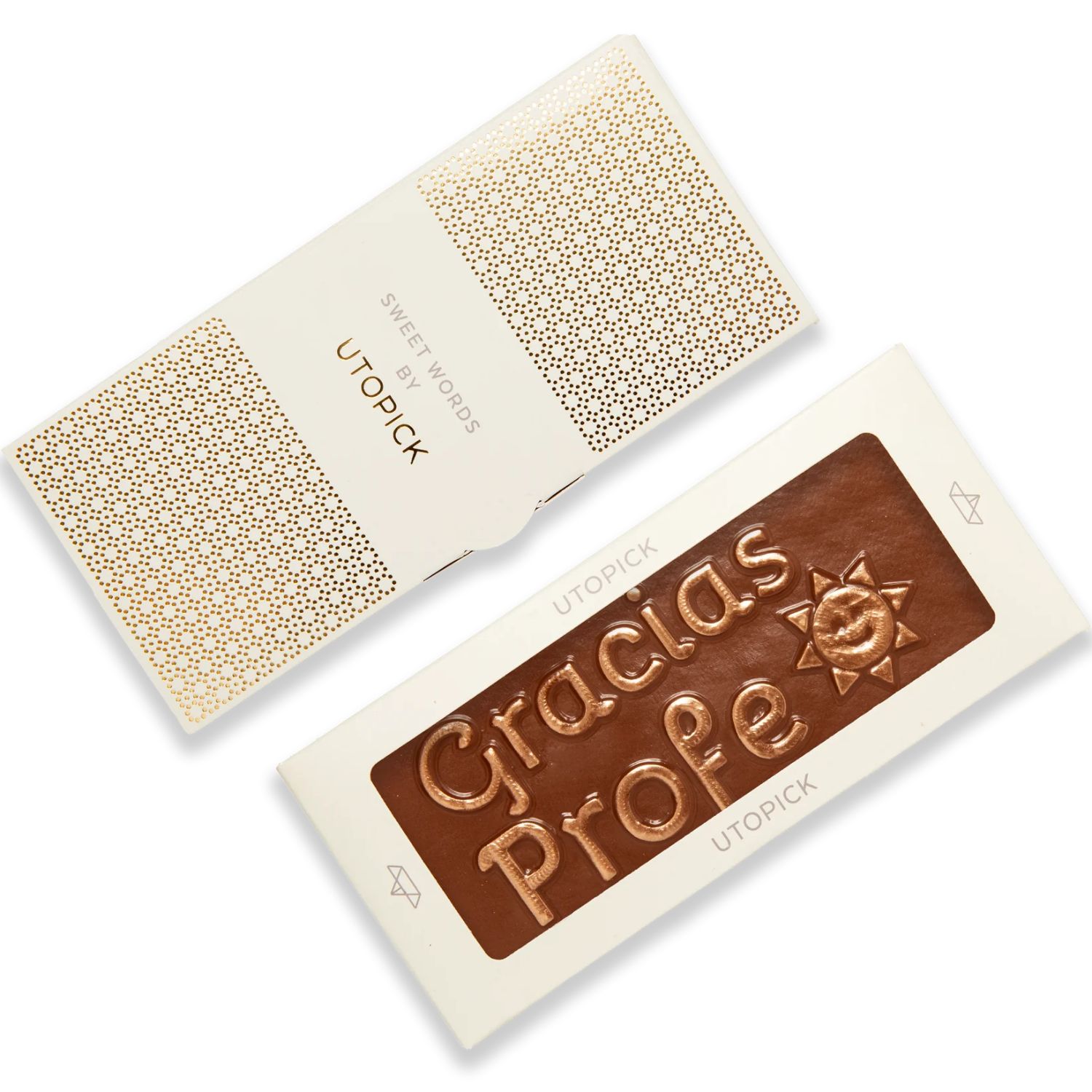 Los maestros chocolateros de Utopik dan las gracias a todos los maestros y profesores su labor durante el curso con esta creación de chocolate con leche al 38% de cacao en la que el agradecimiento de padres y alumnos es el protagonista. Un regalo original para profesores que se convierten en el fin de curso perfecto.