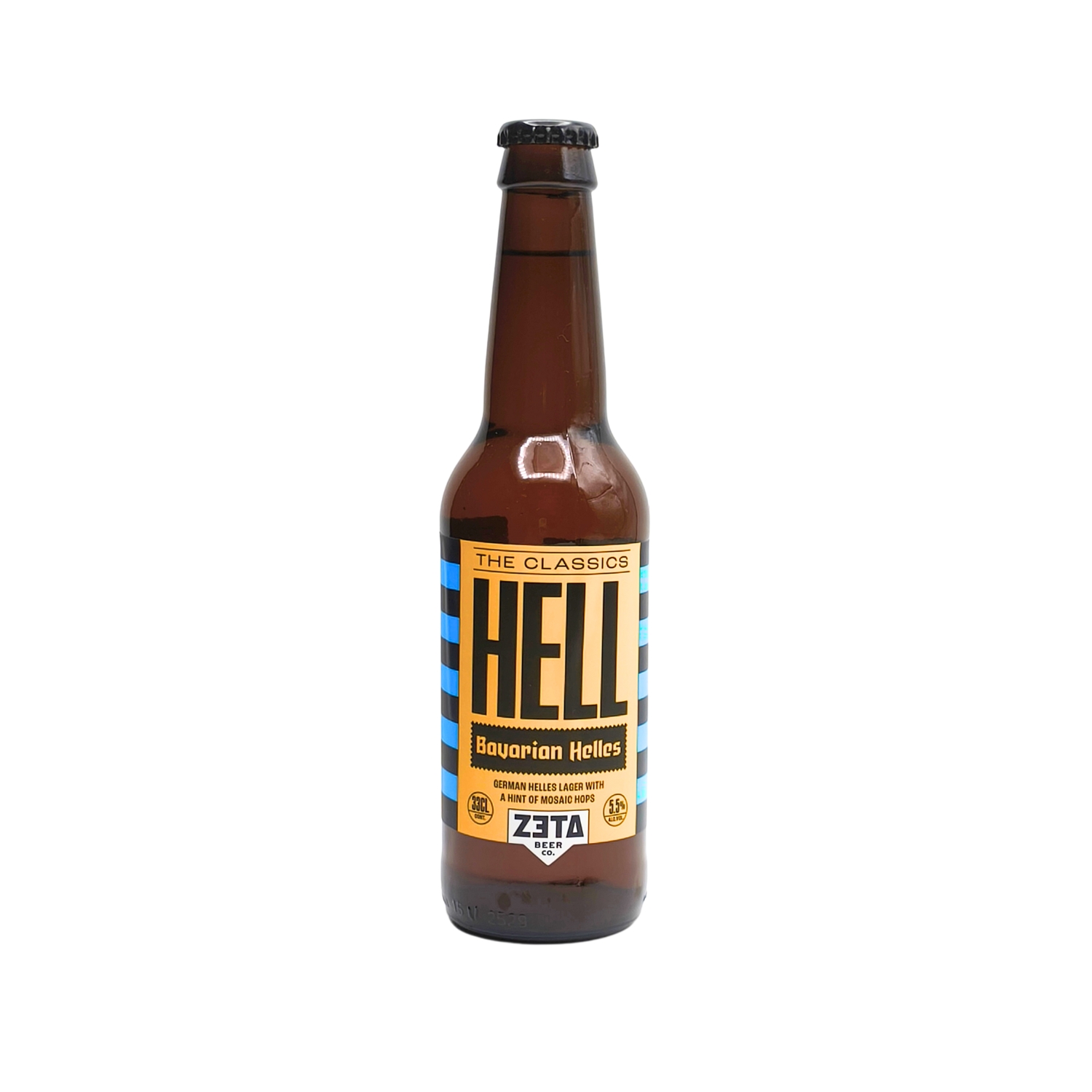 Zeta Hell es una cerveza artesana lager, de baja fermentación. Su estilo es el de las buenas Bavarian Helles, con maltas Pilsen y Carahell usadas en su proceso de preparación.